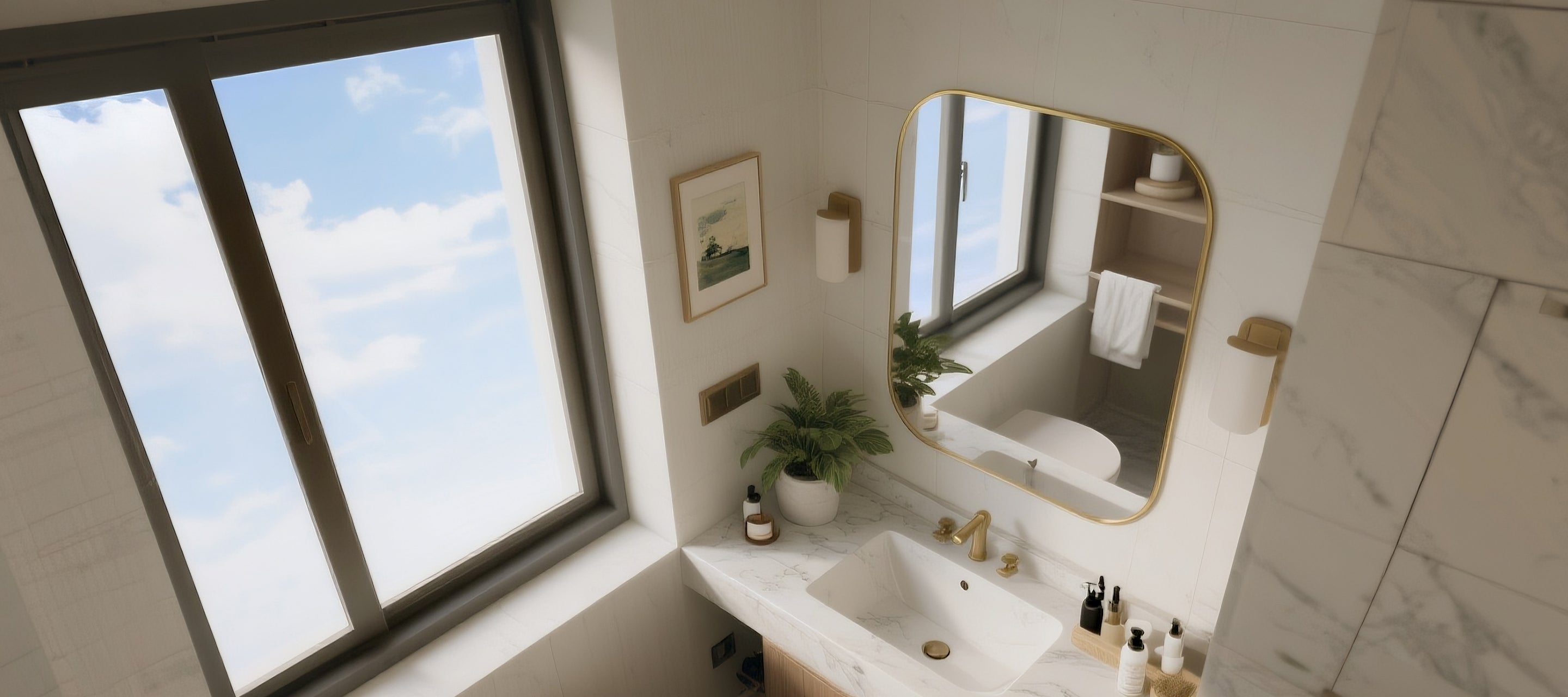 Understated luxury combines subtle sophistication with modern functionality. LED mirrors, sleek hardware, and refined finishes like marble or matte black add a touch of class. This style creates a calm, polished space where quality speaks for itself, turning your bathroom into a serene, high-end retreat.