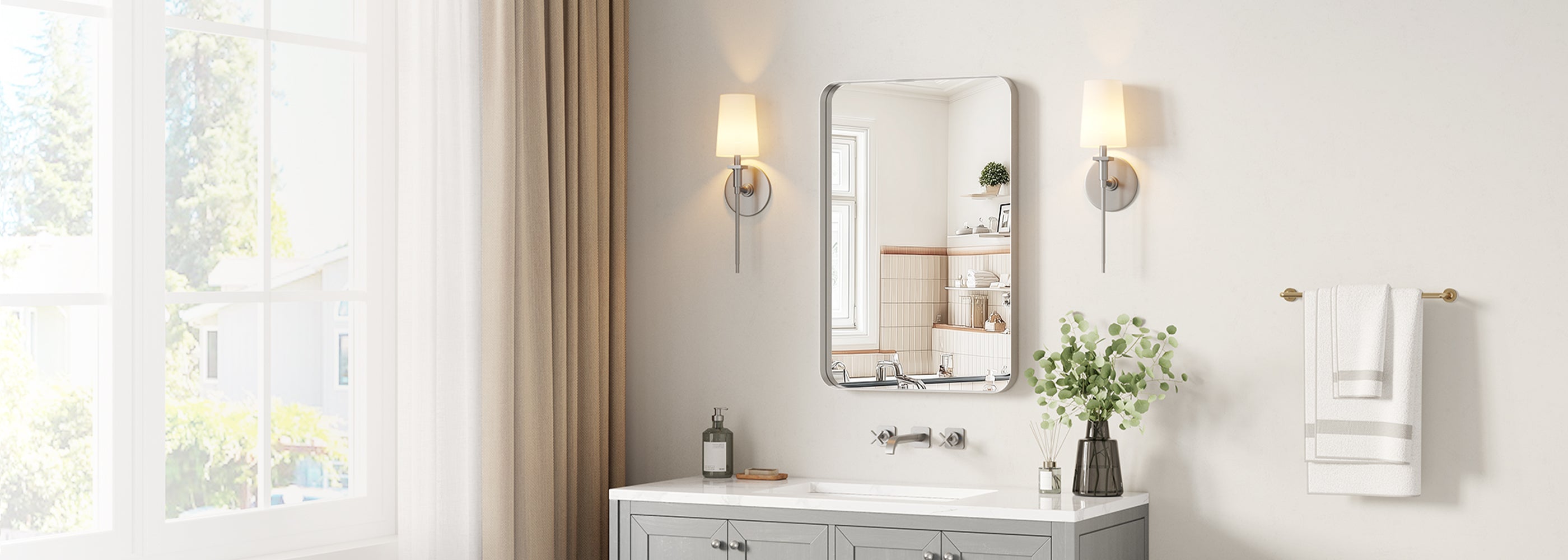 Built to Last – Designed with a rust-resistant aluminum frame in luxurious brushed nickel, this vanity mirror is made to withstand bathroom humidity. The explosion-proof film adds an extra layer of safety and peace of mind.