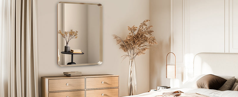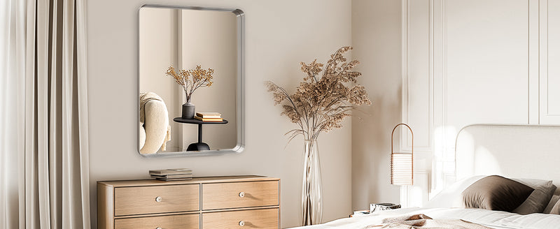 Timeless Modern Design – Measuring 22"x30" with softly rounded square corners, this brushed nickel framed wall mirror is more than functional—it’s a statement piece. Perfect for bathroom updates, bedroom styling, living room accents, entryway charm, or as a stunning fireplace focal point.