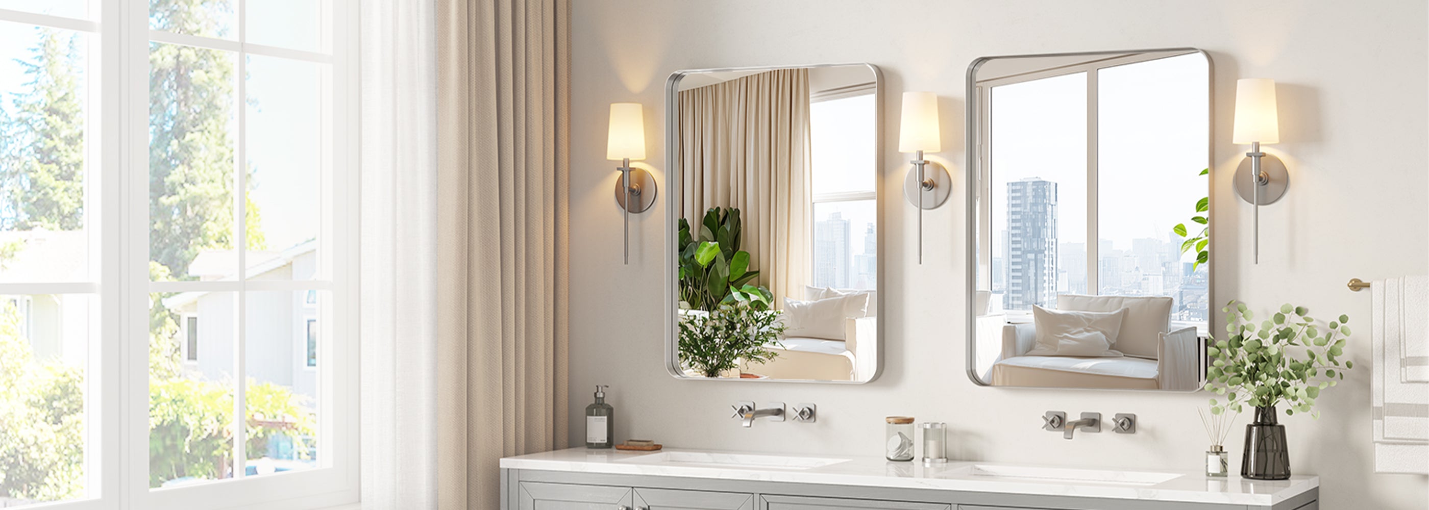 Brilliant Clarity Every Day – Crafted from high-definition float glass, this brushed nickel bathroom mirror reflects your true beauty without distortion. It brightens your room and makes any space feel larger and more inviting.