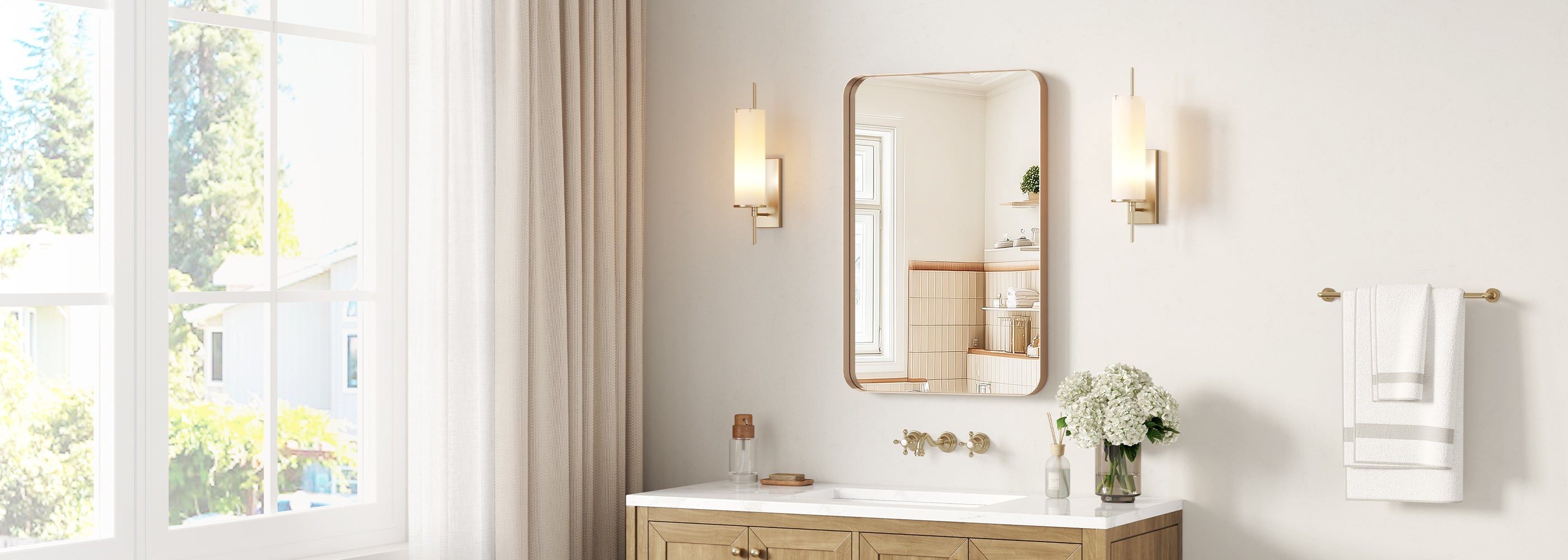 Brilliant Clarity Every Day – Crafted from high-definition float glass, this brushed gold bathroom mirror reflects your true beauty without distortion. It brightens your room and makes any space feel larger and more inviting.