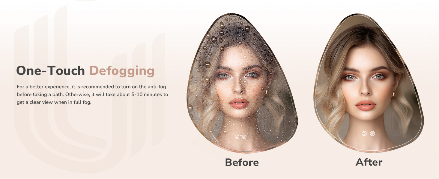 One-Touch Anti-Fog – Stay fog-free with a single touch. Auto shut-off after 1 hour for safe, efficient use.