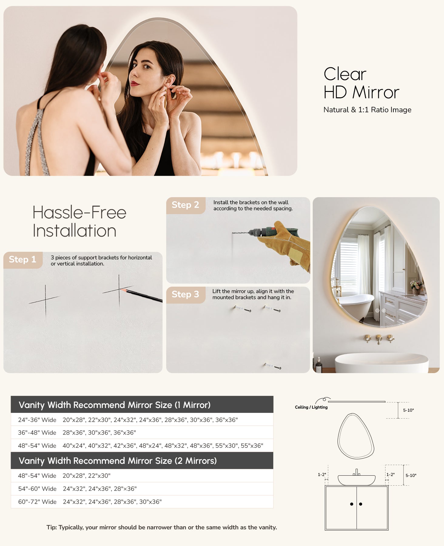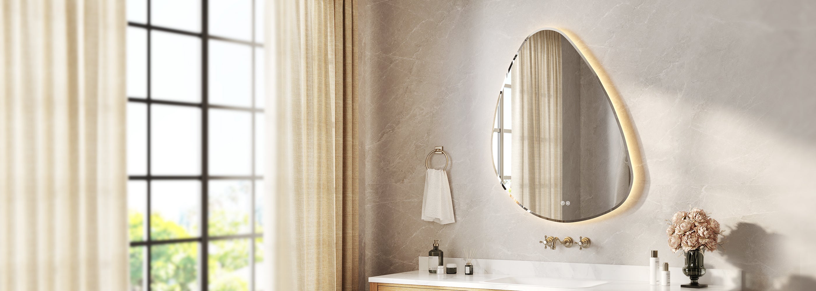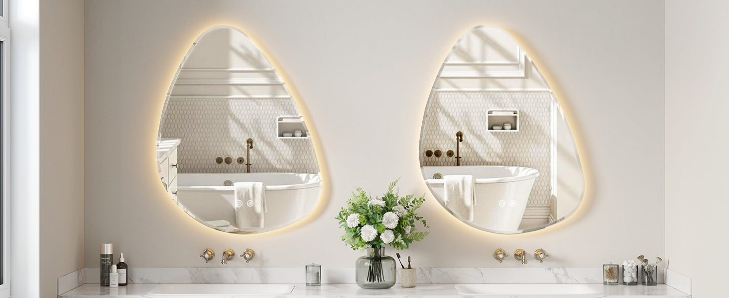 USHOWER Klara Series – Irregular Shaped LED Bathroom Mirror 26'' x 32''