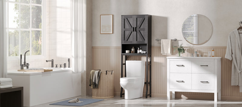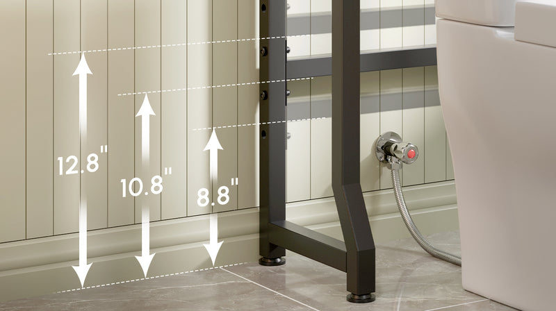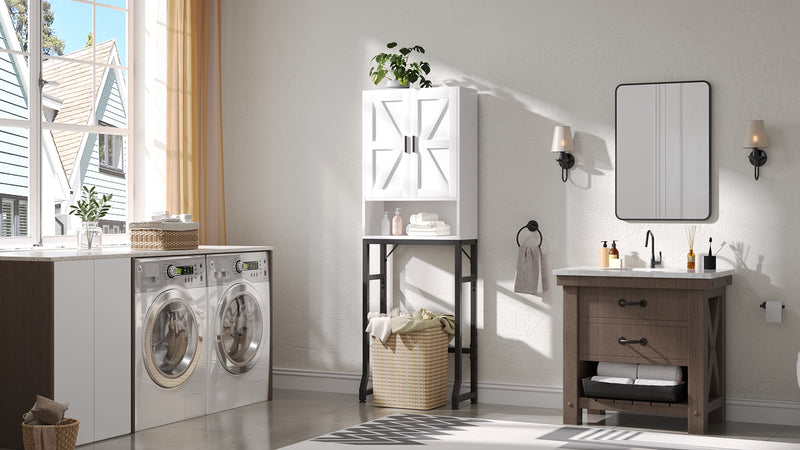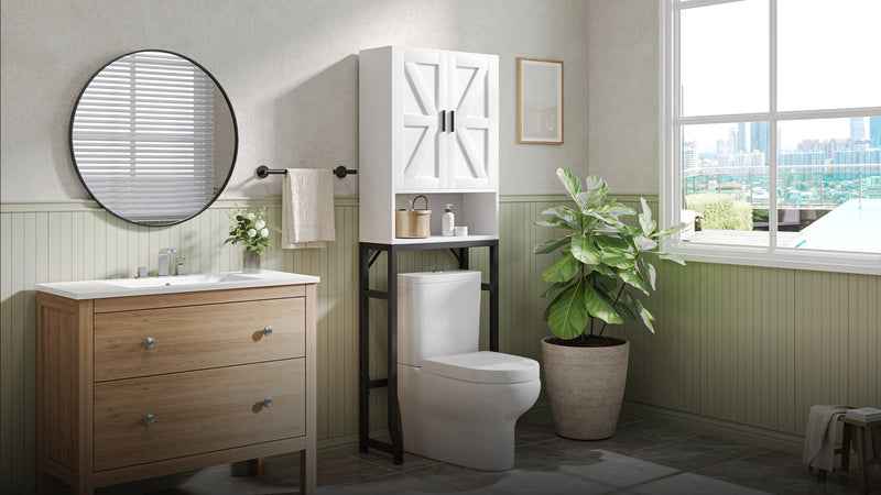 【Space-Saving Storage】Maximize vertical space above your toilet — open shelf keeps daily items at hand, while the upper cabinet neatly hides towels, cleaning supplies, and personal products.