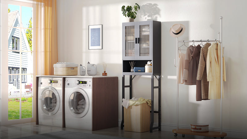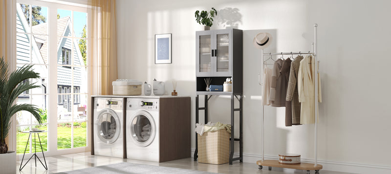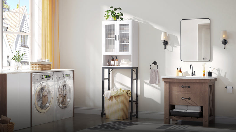 USHOWER Stokado Series – Over-the-Toilet Storage Cabinet with Glass Doors