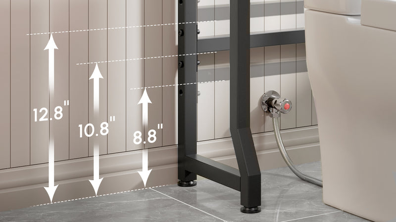 【Stylish Design】Sleek black cabinet paired with a sturdy black frame creates a bold, modern look that complements various bathroom styles, adding both sophistication and practicality.