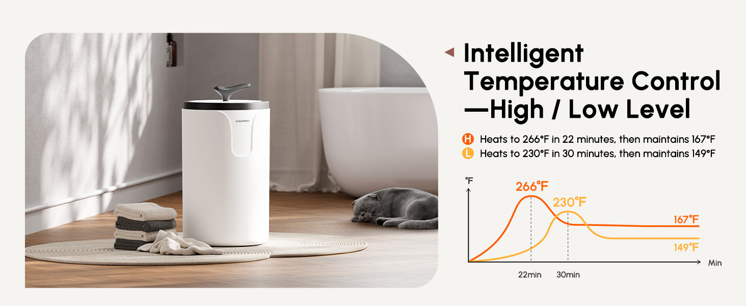 Experience the luxury of warm towels for the whole family. The Ushower large bucket towel warmer easily fits up to two 40" x 70" oversized bath towels, plus bathrobes, blankets, or pajamas. With a 20L capacity and compact dimensions of 12.2" x 12.2" x 19.8", it’s the perfect addition to any modern bathroom. (Note: Not suitable for drying wet or damp items.)