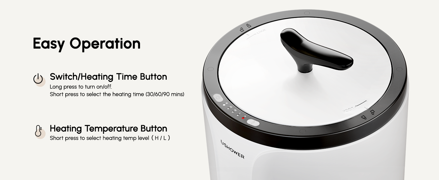 Your safety is our priority. The triple-layer temperature control system ensures automatic shut-off to prevent overheating. The secure lid lock keeps kids and pets safe, while the stainless steel interior makes cleaning effortless. Certified for home use, this towel warmer combines performance with peace of mind.