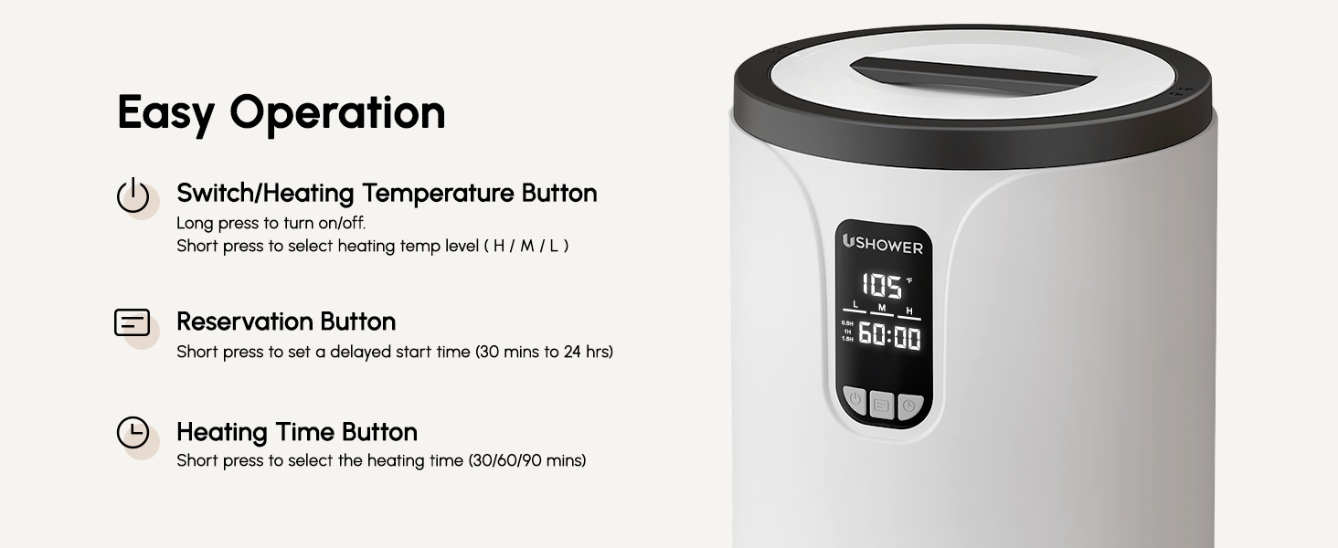 Upgrade your daily routine with smart control. The LCD display provides a clear, user-friendly interface for adjusting temperature and timer settings at a glance. Track your heating progress easily, or set a 24-hour preset timer for a fully personalized and comfortable experience—warm towels exactly when you want them.
